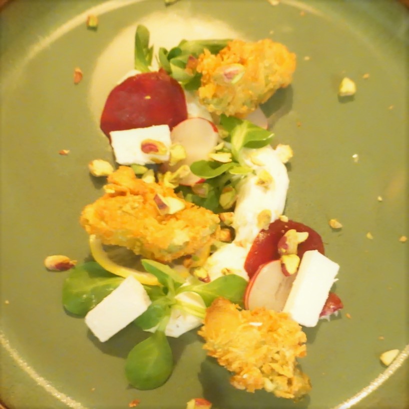 Soms kom je in een restaurant iets tegen waar je nog nooit zelf aan gedacht had. Dit gebeurde bij ons bij de krokante avocado uit deze salade. De avocado blijft zacht, maar krijgt een heerlijk knapperig korstje. Samen met de labneh (labnee? LabJA!) en de feta maakt dit het perfecte vegetarische voorgerecht!