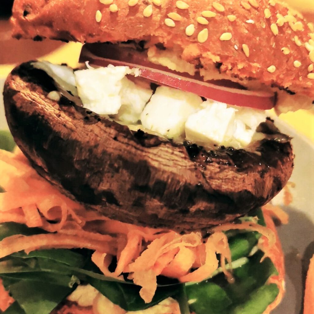 Wij zijn gek op paddenstoelen! Wij gebruiken paddenstoelen vaak in gerechten als vleesvervanger. Deze burger kon daarom natuurlijk niet missen!