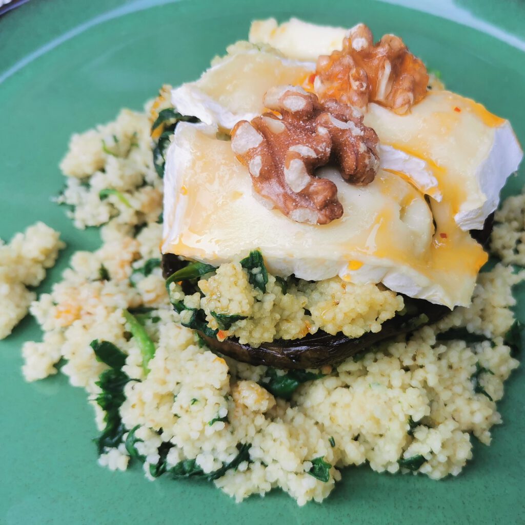 Portobello gevuld met brie, spinazie en couscous