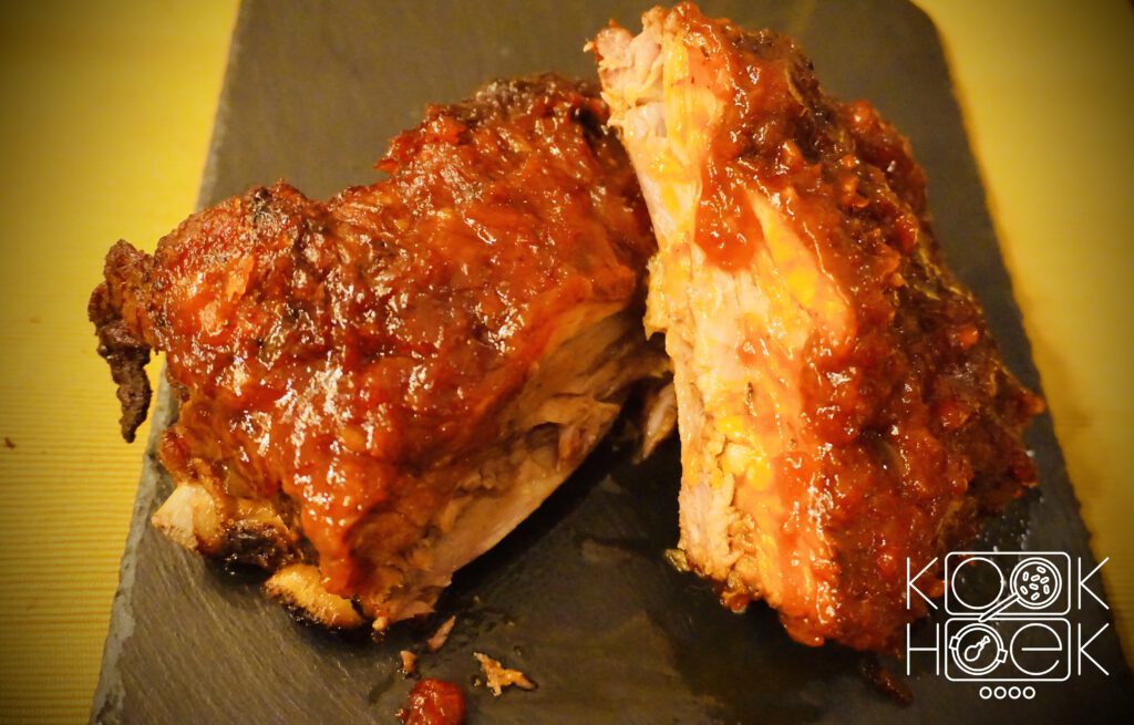 Serveer na deze 4 uur de ribbetjes direct in de oven of bereid dit van tevoren voor en warm de ribbetjes op, op de BBQ.