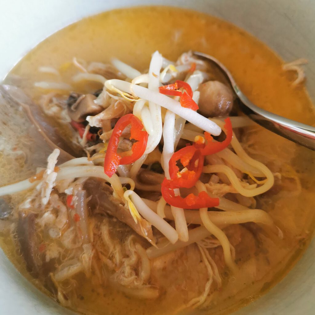 Citroengras koop je vaak per bundel, maar vaak hebben wij maar 1 streng nodig. Gelukkig kan je citroengras heel goed invriezen! Gebruik ook vooral paddenstoelen die je over hebt, en misschien zelfs fijn gesneden chinese kool of paksoi. Zeker als je geen taugé in huis hebt kan kool ook, maar niet te lang meekoken zodat het nog wel knapperig blijft!